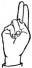 На ћирилици написано ДАВИД УЛЕМЕК састоји се из 11 слова [?]. Исписано ћириличном једноручном азбуком за глувонеме: